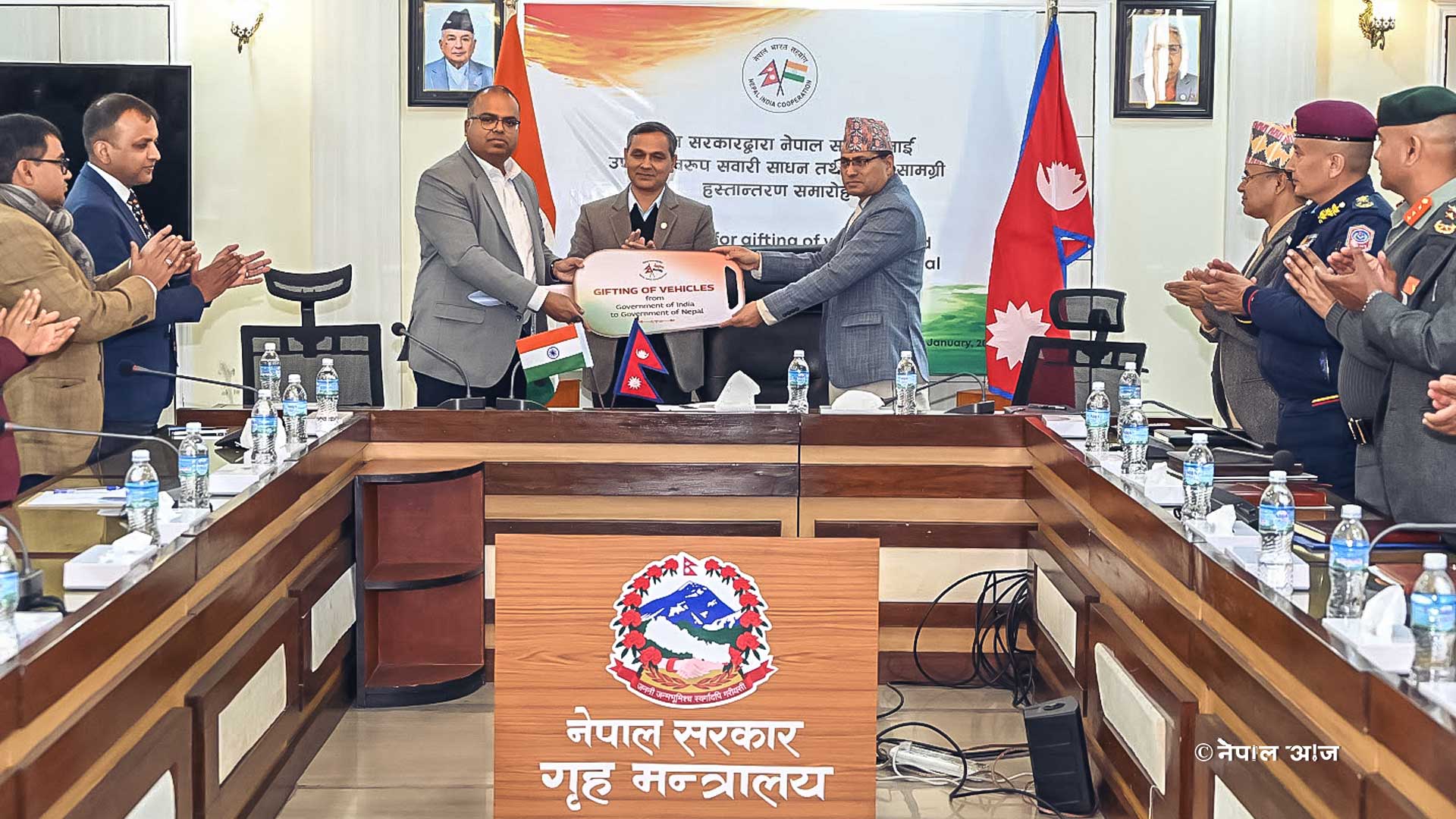 The vehicles were handed over by Dr. Rakesh Pandey, Charge d’Affaires a.i. of the Embassy of India, to Home Minister Om Prakash Aryal. According to the official press release, the support is intended to strengthen logistical readiness across agencies involved in the election process.