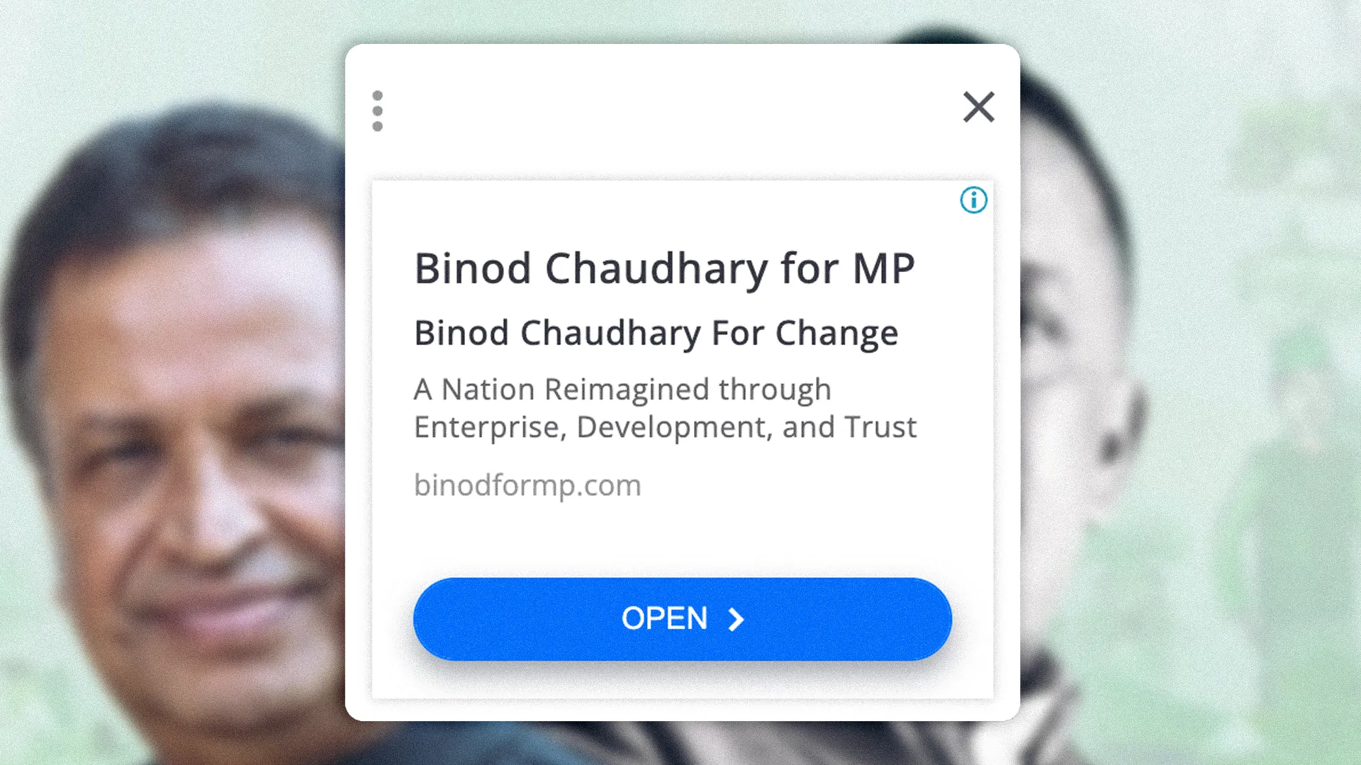 The candidate’s election advertisements are still appearing on various websites and mobile applications in the form of Google Ads. Clicking on the advertisement directly opens the candidate’s official website, www.binodformp.com, where his agenda and campaign materials are displayed.