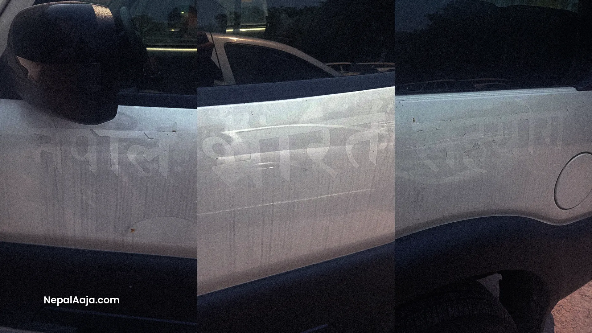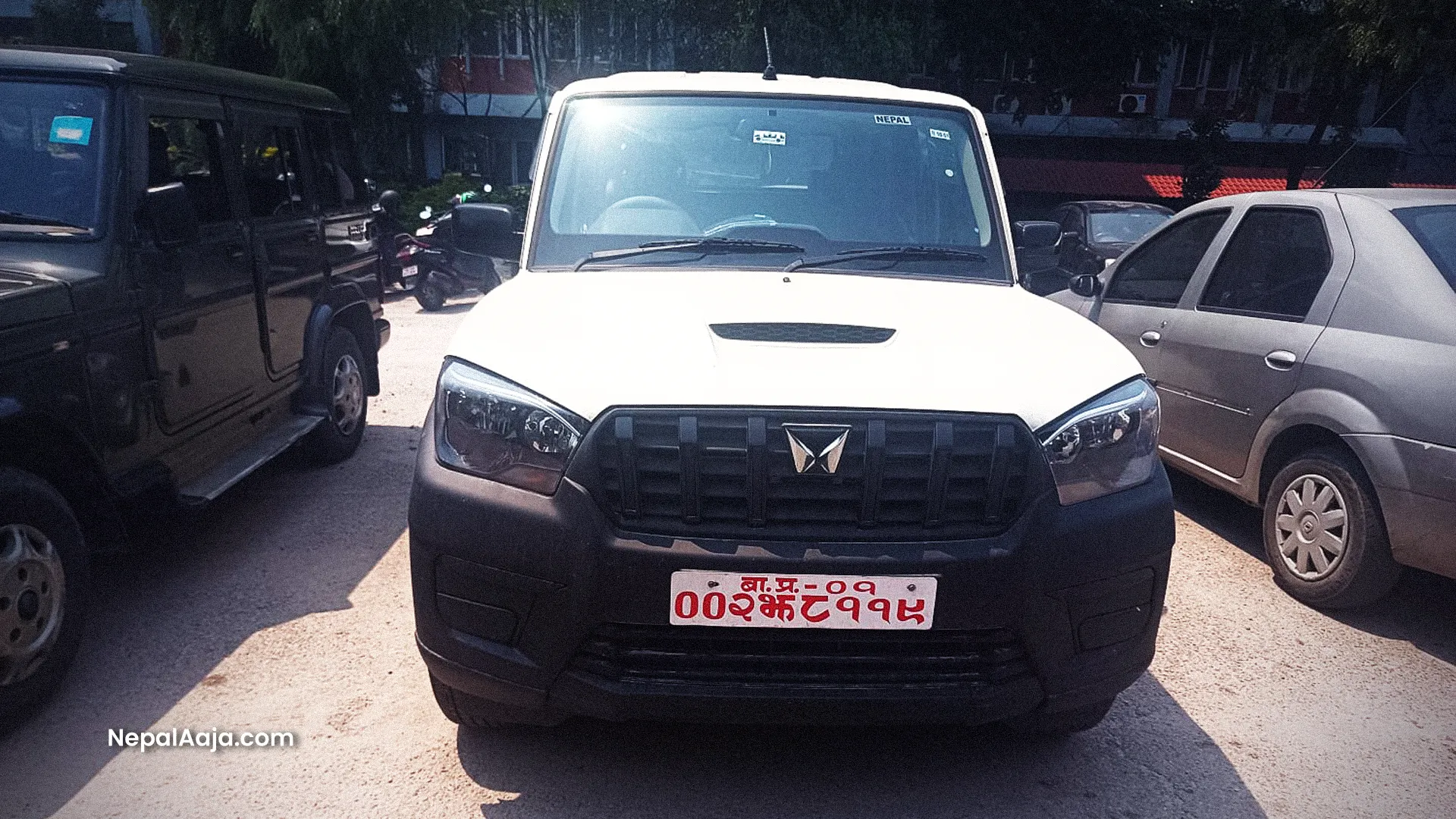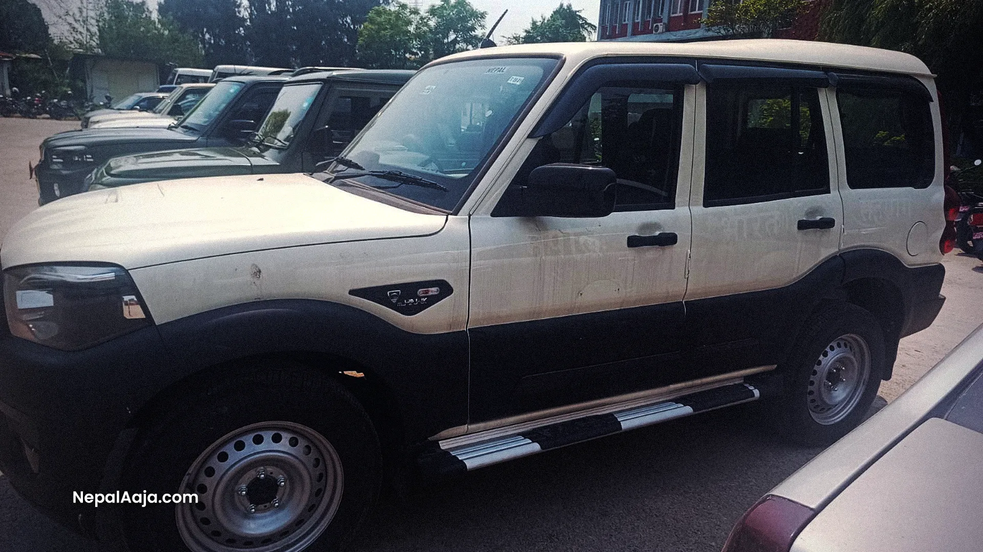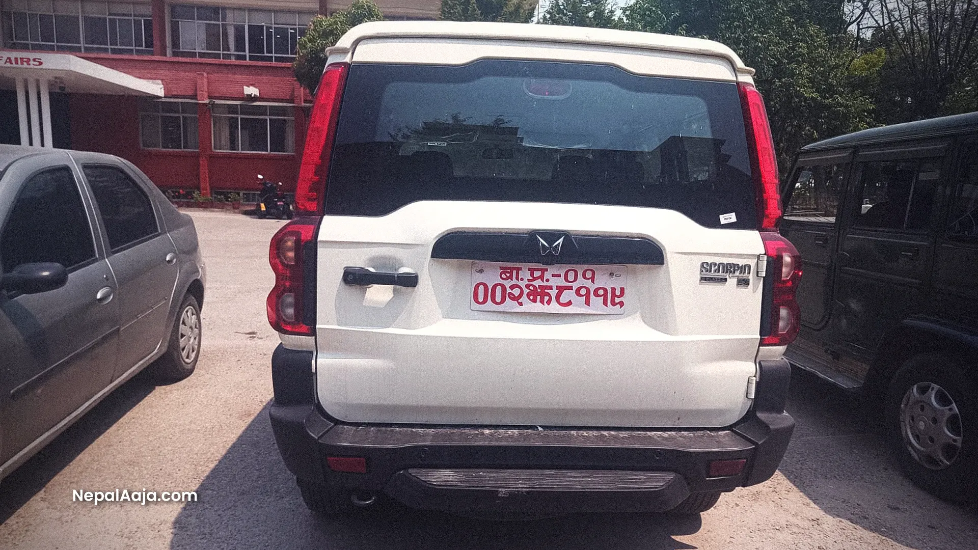 A white, Indian-brand Mahindra Scorpio (Ba Pra 01–002 Jha 8119) was parked on the ministry premises. Generally, such SUVs do not attract special attention. However, one thing visible on this vehicle was unusual—the clear stain remaining after a sticker had been removed.